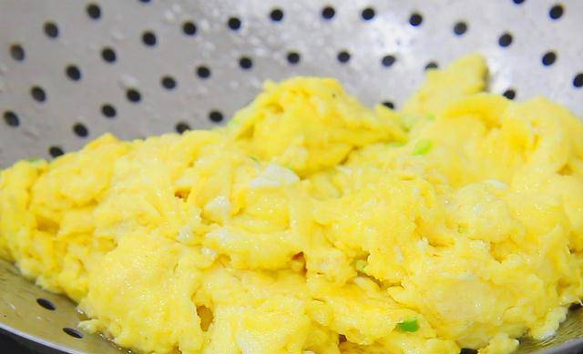 2.锅内烧油,倒入鸡蛋,鸡蛋遇热会凝固成型,把鸡蛋两面煎至金黄倒出,控去多余的油。
