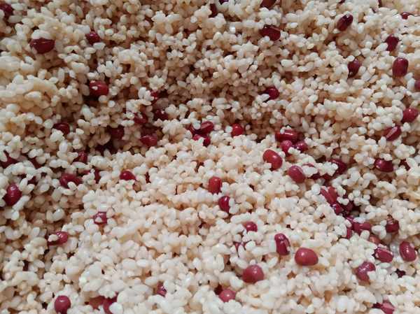 早上起来,把糯米和红豆混合起来,再在米里加调料(很多人包的粽子米里是不放盐的,我觉得气质太淡了)。