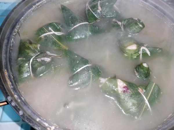 有人要煮四个小时,那是她们包的粽子很大,我不是专业的,粽子不是特别紧,也不是很大,差不多一个半小时就煮好了,为了保险起见,还是煮两个小时吧。
