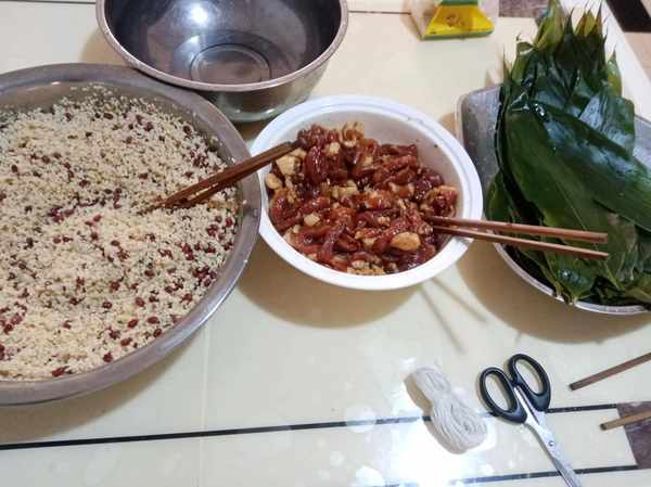 计划着,从网上买了粽叶,去超市买了肉,红豆和糯米。
