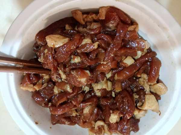 提前一晚把红豆和糯米都洗净泡着,把肉切好,码上调料,放冰箱里冷藏一夜。