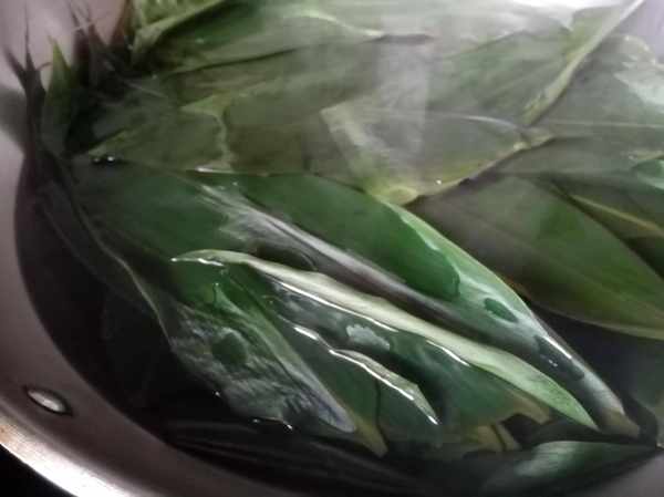 用清水洗干净后,再开水下锅,煮五六分钟,这样粽叶不易开裂。