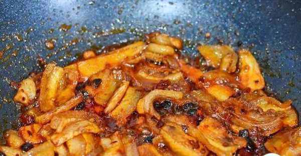 加入豆瓣酱豆豉和甜面酱翻炒上色