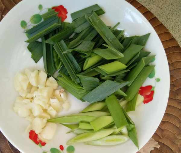 蒜苗头尾分时尚,大蒜拍散切沫
