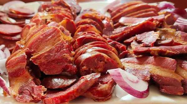 主要特色:新疆熏马肉熏味浓郁,色泽艳丽,芳香四溢,营养丰富。熏制的肉可煮熟、蒸食,香味浓郁、耐于贮藏。