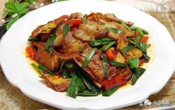 1. 带皮猪五花肉洗净,放入清水锅里煮熟捞出,冷却后切成片;青蒜洗净,切成马耳朵形备用。