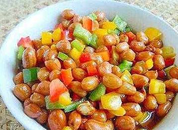 9)将调味汁倒在花生米里,搅拌一下就可以食用了。