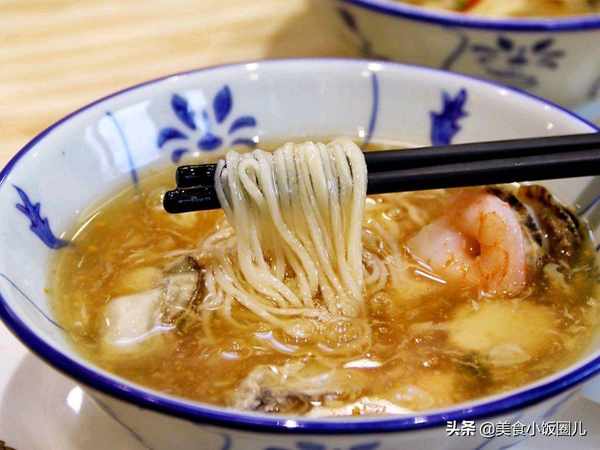 蓬莱小面,烟台久负盛名的风味小吃。细如银丝的面条,配上扇贝、海蛎、大虾等做成的海鲜卤,气质鲜美,口感爽滑。