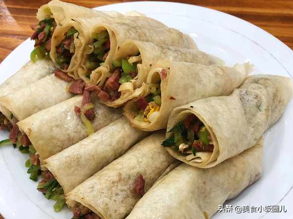 滚烫的炉火之上,一张张绵薄筋道的面饼平摊开来,把准备好的蔬菜、肉卷进饼里,鲜香美味,香而不腻,让人垂涎欲滴,不愧是特色传统美食。