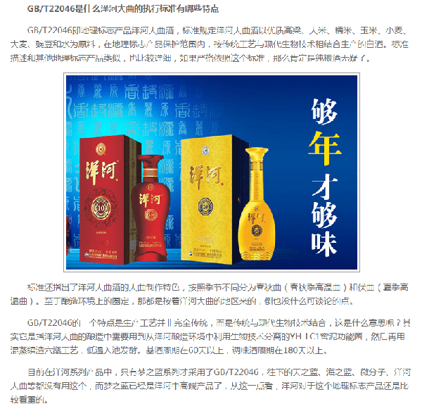 酒瓶上面如果写有按照地理位置划分的国家标准,一般都是比较顶端的白酒了。比如洋河梦之蓝系列,泸州老窖国窖系列,五粮液年份酒系列。