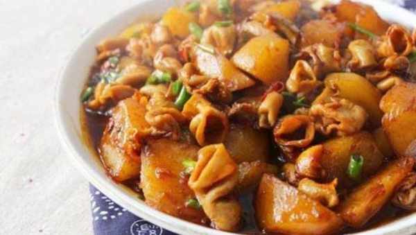 这道菜肴中的肥肠香而不腻,且很有嚼劲。土豆也吸收了肥肠的香味,更加诱人。关键是肥肠具有有效缓冲贫血的功效,如此鲜美又营养的美食怎能让人不心动?