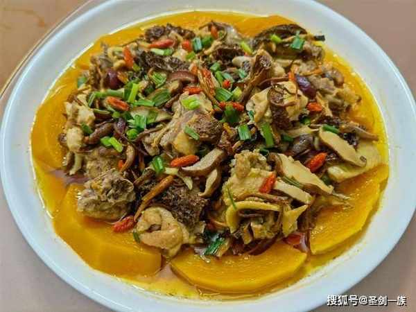 食材:鸡腿,南瓜,蟹味菇,白玉菇,姜丝,葱段。