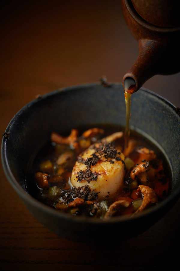 Chawanmushi, BBQ Scallop, Root Vegetables, Seasonal mushroom, Pine Oil, Black Truffle,Mushroom Sauce