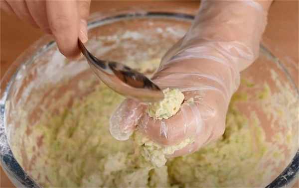 7.用虎口挤出萝卜丸子。