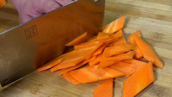 1.将西红柿根部切掉,在切成小朵,切好后放入清水中,加入一勺食盐,浸泡10分钟,胡萝卜去皮切菱形片,青椒去蒂去籽,菱形片,切好后装入碗中备用。