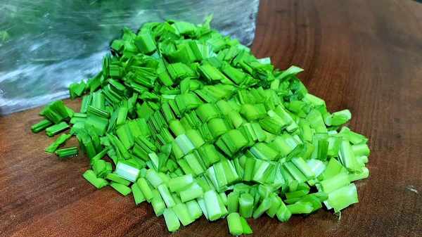 1.将韭菜的坏叶子和换掉的叶子摘掉,处理好后放入清水中,清洗干净,洗净后控干水分,放在案板上,切掉根部一点,再倒切成小段,全部切好后装入碗中备用。