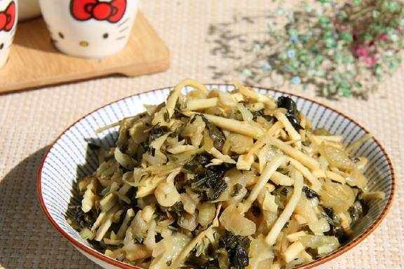 咸白菜,我把它当做开春后第一开胃菜是一点都不夸张的,从缸里捞起的咸白菜洗净切碎后,用油煸炒出香味后可以直接吃,或者入汤都非常的开胃,也可以搭配一些食材一起炒味道更佳,家里还有冬笋,就和咸白菜一起炒制,出锅前加少许鲜酱油提鲜,当冬笋特有的鲜嫩和咸白菜的咸鲜微酸融合一起后,这种滋味我都有点无法形容,反正是爽口加鲜美。有了这一碗菜,下饭,过泡饭,那真的是鱼肉也不屑一顾了。