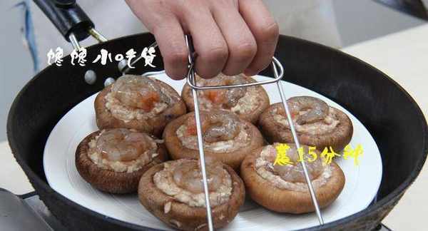 肉馅调好之后静置15分钟,然后用一个小一点的勺子舀出馅料放入香菇中,是不是有点小时候玩泥巴过家家的感觉啊,不过步骤还是十分简单的对吗?