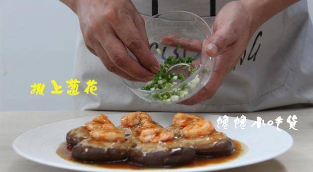 香菇蒸好取出,把料汁直接浇到香菇的表面,看起来大虾金黄,汤汁浓稠,十分的有食欲啊!