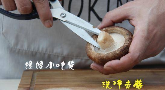 香菇是世界第二大食用菌,也是我国特产之一,在民间素有“山珍”之称。它是一种生长在木材上的真菌。味道鲜美,香气沁人,营养丰富,素有“植物皇后”美誉。但是在做这道菜的时候呢,一定要注意把香菇洗净去蒂,不过要小心啊,不要剪到手哦!