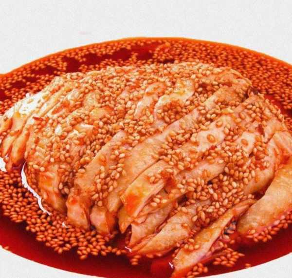 制作方法 ①将鸡宰杀,去毛及内脏,清洗干净,入开水中煮20分钟,加人少许冷水,烧开,将鸡翻面再煮10分钟,又加入一些冷水,烧开再翻面;当用小竹签刺破皮,无血水出现时,捞人凉水中泡1小时,取出晾干水气,用芝麻油50克均匀地抹在鸡皮上,鸡头、颈、翅、爪、身材脯肉、背脊肉分部位切开,鸡头切两块,其余用小木棒轻轻敲打,使之柔软。