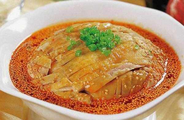 原料: 肥美公鸡1只(重约1500克),酱油50克,芝麻酱6克,白芝麻8克,辣椒35克,味精5克,芝麻油60克,葱花35克,白糖15克,花椒5克,菜籽油20克。