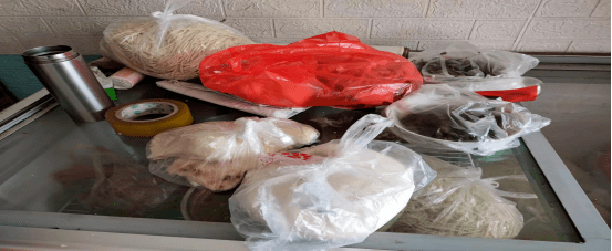 2、厨房卫生条件较差,物品摆放混乱,个人生活用品与食品原料、加工工具混放;