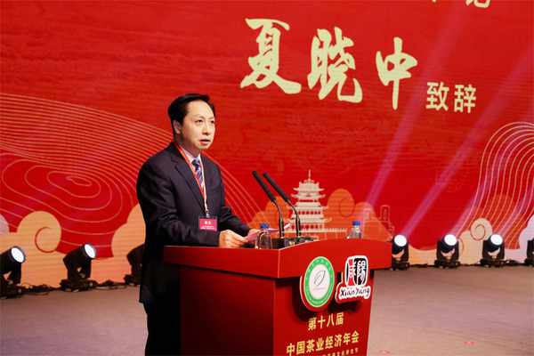夏晓中在致辞中说,近年来,咸阳市深入贯彻落实“因茶致富,因茶兴业”重要指示,大力发展茯茶产业,茯茶文化愈加浓厚、品牌更为响亮、科技不断进步,知名度和影响力大为提升。本次中国茶业经济年会的成功举办,为全市统筹推进茶文化、茶产业、茶科技发展坚定了信心、提供了机遇。咸阳市将深化与天下茶人的务实合作,叫响做亮“咸阳茯茶”区域公用品牌,全力配合中茶协工作,以办好本次年会为契机,架起更多更优质的茶产业交流合作桥梁,为国茶振兴奉献力量。