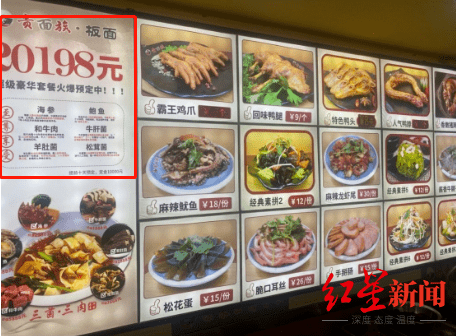 近日,有媒体报道河北省石家庄市桥西区的一家快餐店出售包含海参、鲍鱼、和牛肉、牛肝菌、羊肚菌、松茸菌等名贵食材的豪华板面套餐,价格20198元一碗。该套餐需要提前十天预定,定金一万元。
