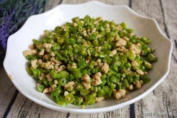 7、出锅之前把猪肉碎倒进去一起翻炒均匀即可出锅。
