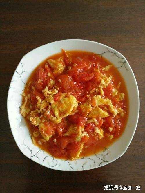 【材料】大个西红柿1个,鸡蛋3个,植物油适量,盐适量,白糖1小勺