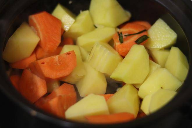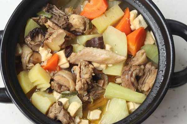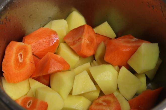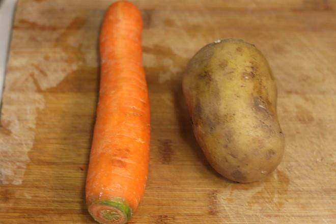 土鸡 半只、土豆 1个、胡萝卜 1根、香菇 5朵、葱 2根、蒜 4个、姜 适量、水适量 适量、食用油 适量