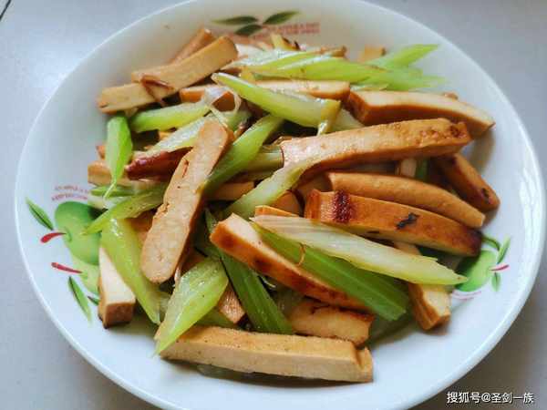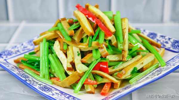 1、芹菜摘掉叶子,清洗干净后切成段。香干切成片即可。