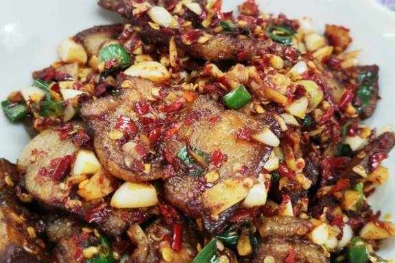 不踩雷的招牌菜,也是这里受欢迎的原因作为苍蝇馆子,如果对于环境要求苛刻,感觉没什么必要。因为来这里吃饭的人们,都是冲他家味道来得。虽然不能说是湘菜的唯一代表,确实今天做得比较好湘菜馆子之一。来到这里有三道菜是桌桌必点的,分别是大刀牛肉,炒卤肉和口味鸡。