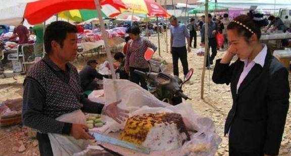 切糕,在城市里买这种东西比较奢侈,但在农村集市上没那么贵,而且口味正宗。