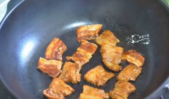 3.锅烧热后,不倒油,直接将五花肉放入小火慢煎。期间要翻面,直到两面金黄。最好用不粘锅哈。