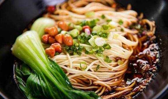 材料:面条、青菜、猪油、辣椒油、酱油、花椒油、盐、味精、葱花、蒜末、香菜、熟芝麻、花生碎。