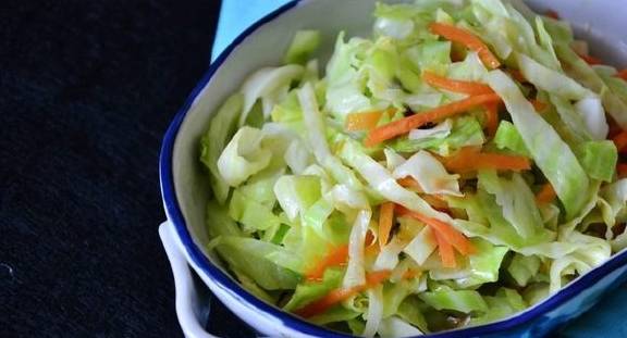 食材:圆白菜、胡萝卜、蒜瓣、盐
