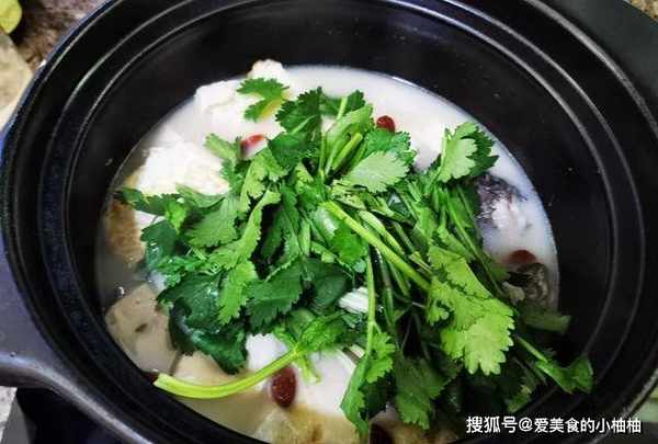 3、等时间到了,加入豆腐块,继续炖煮10分钟,放盐调味,3分钟以后,关火放香菜。