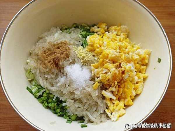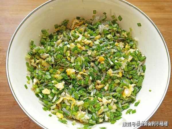 4、一道好吃的韭菜鸡蛋馅就调好了,无需添加其他料,味道非常的鲜,光闻着就流口水了,家有虾皮的最好扔一把进去,味道更鲜。