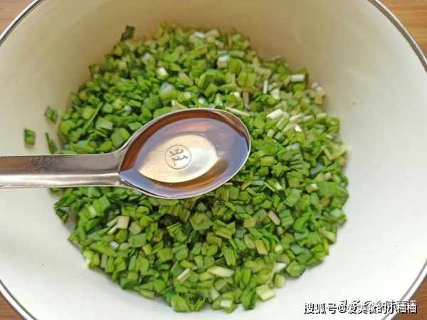 2、正确的做法,用水管冲洗干净后,用双手攥住,用力甩干水分,在切成碎末,加入一勺食用油,可防止韭菜出水。