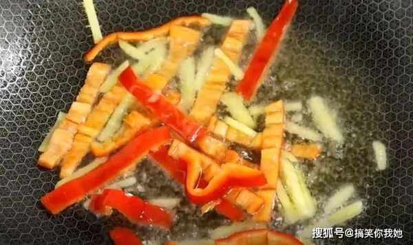 6、又到入茴香菜,再加食盐、生抽、蚝油调味,继续翻炒半分钟。
