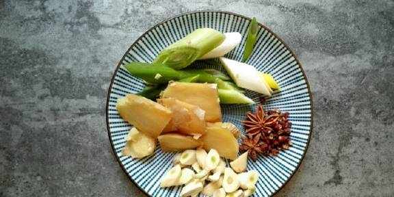 姜1块葱1段大蒜6瓣八角2个花椒20粒