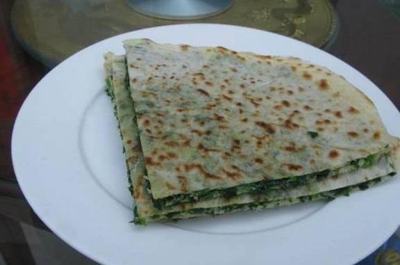 韭菜馅烙饼,皮很薄,香酥可口,我吃了好几张。