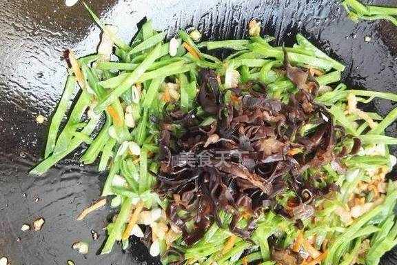 12.最后加入已经成熟的黑木耳,炒均匀关火盛盘。