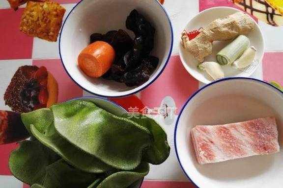 1.原料:猫耳朵豆角、五花肉、胡萝卜、黑木耳、葱、姜、蒜。