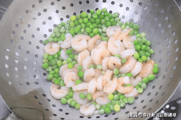 烧半锅开水,放入豌豆,淋入一点植物油锁住营养,汆煮1分钟左右,豌豆断生以后放入虾仁继续煮20秒钟,倒出来用清水冲洗过凉,虾仁不能久煮,不然鲜味容易流失,吃着不够嫩。