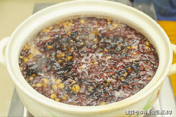 砂锅里加半锅水,加入少许碱面让豆子更容易煮软,把豆子全部倒入大火烧开后加入一点清水转小火炖煮,每一次烧开都要往里面加入少许清水,这样煮出来的豆子软烂不破皮。