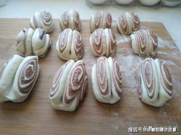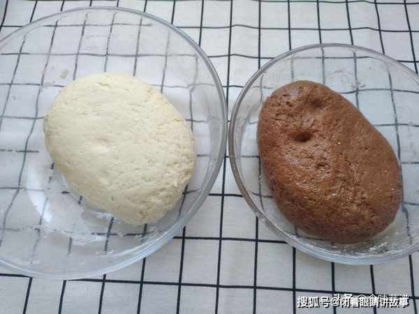1、一号碗加入300克面粉,二号碗加入300克面粉和5克可可粉,分别加3克酵母粉,用温水和成面团,水不宜过烫。