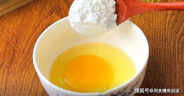 3、接着碗中放一个鸡蛋,加一勺淀粉,混合成蛋液。